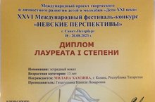 Поздравляем нашу звёздочку Хамзину Милану( преподаватель Гизатуллина К.Л.) со званием Лауреата 1 степени XXVI Международного фестиваля-конкурса " Невские перспективы" , который прошёл 18-20 августа в Санкт-Петербурге.