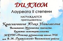 | Короткое название: | МБУДО "ДМШ № 26 им.В.М.Гизатуллиной" |