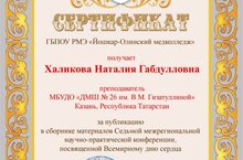 Преподаватели ДМШ №26 Халикова Наталия Габдулловна и Чалдаева Наталья Михайловна приняли участие в Межрегиональной научно- практической конференции, посвящённой Всемирному дню сердца ( город Йошкар- Ола) и получили сертификат за публикацию в сборнике статей конференции.