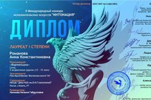 Романову Анну ( Лауреата 1 степени), Сиразеева Ильяса ( Лауреата 2 степени) и их преподавателя Халикову Наталию Габдулловну!