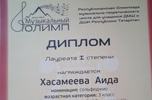 21 марта прошла ежегодная Республиканская Олимпиада музыкально- теоретического цикла " Музыкальный олимп", где учащиеся 3 класса ДМШ 26 в номинации " Сольфеджио" показали высокие результаты: