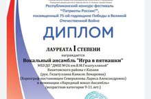 Вокальный ансамбль " Игра в пятнашки"- Лауреата 1 степени ( Народный вокал)