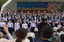В честь Праздника Великой Победы на Ярмарочной площади состоялось выступление сводного детского хора учреждений дополнительного образования г.Казани. В составе огромного концертного коллектива выступил хор ДМШ №26 им.В.М.Гизатуллиной "Сомбель" (руководитель Камиля Лемаровна Гизатуллина).