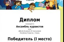 Поздравляем победителя (лауреата I степени) Всероссийского творческого конкурса "Рассударики" ансамбль кураистов (руководитель Н.М.Чалдаева, концертмейстер Л.Р.Шакирова); лауреата III степени Романову Аню (эстрадный вокал, преподаватель К.Л.Гизатуллина)! Желаем покорения новых творчесикх вершин!