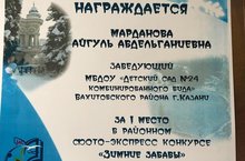 Заведующий нашего детского сада приняла участие в фото-экспресс конкурсе "Зимние забавы" и заняла 1 место в районном этапе. Поздравляем ее с этой победой и желаем в дальнейшем творческих успехов!