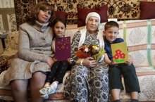 В преддверии праздника "Дня Победы" , наши воспитанники под руководством воспитателя Шарафиевой Лилии Фаизовны, посетили труженика тыла Ахметгалиеву Могианвар Файзрахмановну. Она долгие годы проработала в нашем детском саду. Мы поздравили ее с приближающимся праздником, дети рассказали стихи и подарили подарки, сделанные своими руками. Могианвар Файзрахмановна поделилась своими воспоминаниями о войне, о событиях, которые повлияли на ее жизнь. Она осталась очень довольна нашим приходом и поблагодарила нас за поздравления и подарки. Мы пожелали ей здоровья и долгих лет жизни.