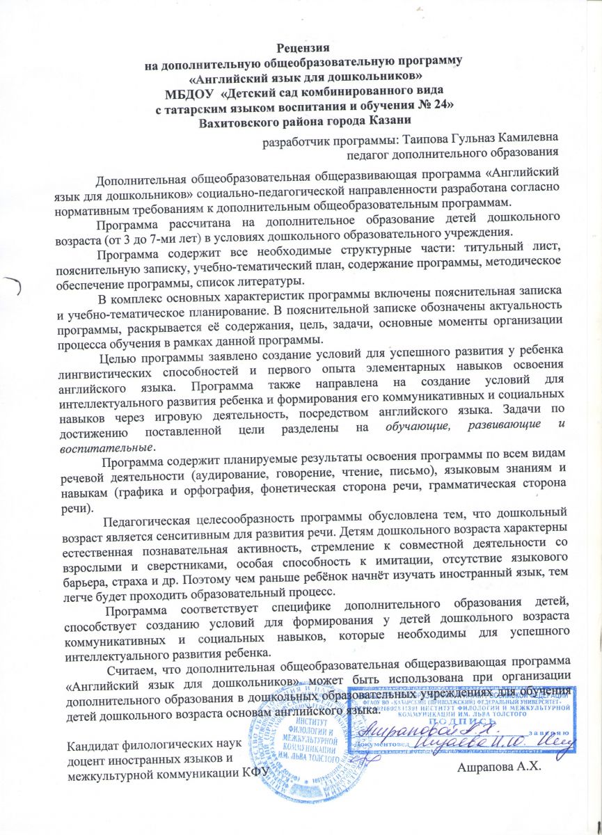 Рецензия на дополнительную программу по английскому языку