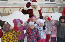 Сегодня к нашим малышам пришёл в гости Дед Мороз. Душевно прощались, обнимались, все обещали хорошо себя вести и приглашали дедушку в гости через год.
