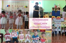 Под руководством музыкального руководителя, во всех группах прошли утренники. Дети с удовольствием пели песни, танцевали, принимали активное участие в играх, отгадывали загадки вместе с мамами. Через музыку, стихи, песни ребята учились гордиться своими родными и близкими, ценить и уважать главного человека, подарившего им жизнь — свою маму. -