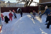 Строить крепость во дворе.Много снегу набросали,