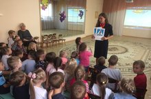 Сегодня для наших воспитанников была организована встреча с инспектором по пропоганде Сафиной А.И. Наши малыши блистали своими знаниями по безопасности дорожного движения, достойно отвечали на все вопросы инспектора, с интересом смотрели мультфильм по ПДД и получали памятные подарки!