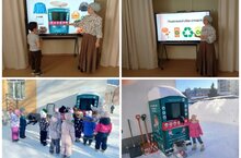 Контейнерны дөрес куллану өчен төркемнәрдә чаралар үткәрелә. Өлкәннәр төркеме тәрбияче Ландыш Баграмовна белән уеннар ярдәмендә чүпне тиешле итеп сортировкалауны кабатлыйлар.
