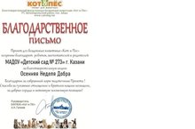 Бакчабыз "Эт һәм мәче" приютыннан рәхмәт хаты алды. Бу акциягә катнашкан мәрхәмәтле, олы йөрәкле һәр кешегә олы рәхмәтебезне белдерәбез.