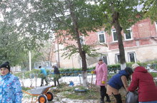 На субботник мы идём, грязь и мусор уберём. Солнце светит очень ярко, от работы стало жарко.