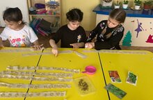 А это значит, что пора готовиться к посадке семян в огороде детского сада.Ребята с большим удовольствием клеяли семена к полоскам бумаги. Это позволит быстро выполнить посадку культур и получить равномерные всходы.