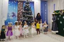 В нашем детском саду сегодня прошел первый новогодней утренник в ясельной группе.Малыши пришли нарядные, веселились у нарядной елки с красавицей Снегурочкой. Водили хоровод, играли в снежки, танцевали с погремушками. Помогли Снегурочке зажечь огоньки на новогодней, праздничной елочке. В конце праздника всем подарили подарки. Утренник прошёл в теплой сказочной атмосфере.