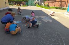 Сегодня мы путешествовали по сказкам, они так красиво "ожили" у нас на асфальте. Дети с радостью разукрасили персонажей из любимых сказок. Получилось очень ярко и красиво, а самое главное этот вид занятия доставил детям огромное удовольствие. Персонажи представлены из русских и татарских сказок, как авторских так и народных: "Колобок", "Теремок", "Приключения Буратино", "Өч кыз".