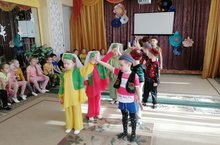 Сегодня в детском саду было развлечение для детей - провожали зиму и встречали весну. Дети играли, пели, танцевали, бвло очень весело.В гости к нам заглянули скомрохи, петрушки, баба Яга, Зимушка.