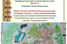 Габдулла Тукай - великий поэт татарского народа. Несмотря на то, что он прожил недолгую жизнь Тукаем было написано множество стихов, сказок для взрослых и детей на татарском языке, которые сейчас переведены на разные языки мира. В нашем детском саду мы часто проводим беседы о поэте, разучиваем стихи и сказки, написанные для детей, в этом году также в день рождения поэта мы провели выставку рисунков по произведениям Габдуллы Тукая. Также наши воспитатели приняли участие в Республиканском конкурсе "Волшебный мир сказок и стихов Габдуллы Тукая".