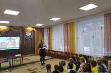 Сегодня в нашем детском саду проходила встреча с сотрудниками ГИБДД. Старший инспектор ОГИБДД УВД УМВД России по г. Казани Гильмутдинов Л.К. и ведущий специалист отдела профилактики ТУ ГБУ БДД г. Казани Музафарова З.В. прочитали детям лекцию о безопасности на дороге, рассказали и показали какие дорожные знаки встречаются нам на дорогах. Детям показали поучительные мультфильмы по ПДД и раздали книги.