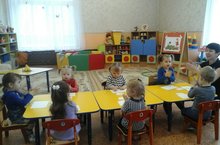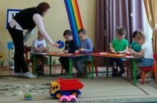 Воспитатель первой младшей группы показала занятие по художественно-эстетическому воспитанию на тему "Зёрнышки для цыплят", целью которого являлось учить детей угадывать птиц по описанию, упражнять в лепке округлых форм, отщипывании маленького куска от большого.Занятие было показано внутри детского сада для воспитателей.