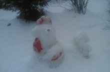 Наши воспитатели проявили творческие способности в постройке поделок из снега. Так в нашем садике поселился символ настоящего года - петушок, который принесёт нам в этом году только удачу и радость.