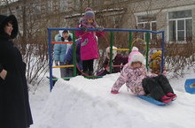 В детском саду объявлен конкурс на лучший зимний участок. На участке старше-подготоивтельной группы нас встречает обезьянка - символ года!