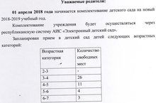 01 апреля 2018 года начинается комплектование детского сада на новый 2018-2019 учебный год.
