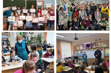 Сегодня в лагере был насыщенный день. Ребята побывали в театре "Экият", где посмотрели интересное представление "По дороге в Новый год", поучаствовали в конкурсе рисунков "Здоровое питание". После обеда старший инспектор отдела пропаганды ОГИБДД г. Казани Гильмутдинов Л.К. провел беседу по правилам дорожного движения. А ведущий специалист отдела профилактики ТУГБУБДД Музафарова З.В. провела интересную игру, в ходе которой ребята повторили дорожные знаки, отгадывали загадки и получили замечательные призы.