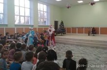 26 декабря учащиеся начальной школы побывали на новогоднем представлении. Ребята посмотрели новогодний концерт, потанцевали, продемонстрировали маскарадные костюмы. А самым активным и талантливым Дед Мороз и Снегурочка вручили грамоты и призы за победы в школьных, районных и городских конкурсах.