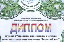 Поздравляем Тихонову М., Усмонову С., учащихся 1 класса, рук. Хлебникова Н.Г., за цикл стихов о природе, занявших 3 место в номинации "Художественное слово" в XIV городском экологическом фестивале сценического творчества "Солнечный мост"