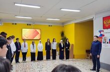 Cегодня прошла еженедельная церемония поднятия флагов и исполнения гимнов РФ и РТ. На церемонии присутствовали 8 классы.