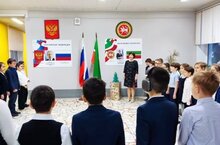 Cегодня прошла еженедельная церемония поднятия флагов и исполнения гимнов РФ и РТ. На церемонии присутствовали 3 классы.
