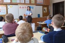 29 сентября в 1 классе прошла беседа по правилам дорожного движения. В гости к первоклассникам пришел старший инспектор отдела ДПС и розыска отдела ГИБДД УМВД России по г. Казани старший лейтенант полиции Назаров П.И. Ребята посмотрели фильм по ПДД и ответили на вопросы инспектора.