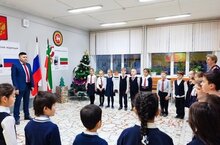 Cегодня прошла еженедельная церемония поднятия флагов и исполнения гимнов РФ и РТ. На церемонии присутствовали 1 классы.