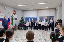 Cегодня прошла еженедельная церемония поднятия флагов и исполнения гимнов РФ и РТ. На церемонии присутствовали 2 классы.