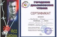 Учителя и учащиеся нашей школы приняли участие в городской научно-практической конференции учащихся имени Мусы Джалиля «Строки, опаленные войной», посвященной 110-ой годовщине со дня рождения М.Джалиля. Проект урока «Муса Джалиль - жизнь и творчество…» учителей татарского языка и литературы Фахрутдиновой З.Н., Рахимовой Р.А. вошел в сборник конференции. Учащийся 10 класса Сарваров Нияз (руководитель Сарварова Л.Л.) выступил с защитой своей исследовательской работы «Слова-символы в творчестве М.Джалиля». Поздравляем их!