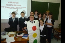 В нашей школе традиционно проводится месячник безопасности «Внимание, дети!». В рамках этого месячника, в сентябре месяце 2013 года, классы среднего и старшего звена проводили мероприятия по правилам дорожного движения в подшефных классах начальной школы. 28 сентября 8а класс организовал мероприятие в 4а классе, на котором учащиеся 8а класса проводили с четвероклассниками конкурс загадок, шарад и кроссвордов по правилам дорожного движения. Конкурс был проведен на «УРА», пользу и удовольствие от своего труда получили и четвероклассники и восьмиклассники.