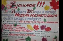 В школе с 14 по 21 ноября 2011г. проходила Неделя осеннего добра, в рамках которой учащиеся школы провели акцию «Мы в ответе за тех, кого приручили». В ходе акции был организован просмотр мультфильмов о животных в школьном медиацентре сбор корма, ярмарка поделок, средства от которой пошли на покупку крупы, масла, мяса для собачьего приюта в п. Столбище. По итогам акции была выпущена газета, которую могли почитать учащиеся, учителя и родители школы. Активное участие в этих мероприятиях приняли учащиеся 7а, 3б, 10а, 6а, 6б, 7б, 8б, 3а, 5а, 11а классов, педагоги - Сурьянинова Е.В., Миронская О.П., Александрова М.Р., жительница микрорайона, которая оплатила проезд до приюта.