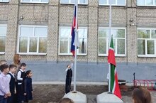 Cегодня прошла еженедельная церемония поднятия флагов и исполнения гимнов РФ и РТ. На церемонии присутствовали 2 классы.