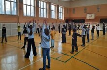 Cегодня прошла еженедельная церемония поднятия флагов и исполнения гимнов РФ и РТ. На церемонии присутствовали 6 классы.