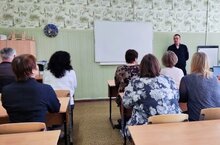 Сегодня перед педагогическим коллективом школы выступил инспектор пропаганды ОГИБДД капитан полиции Гостев М.С.