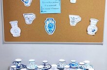 Выставка творческих работ учащихся 5 классов. Тема "Гжель". Педагог Синегубова Марина Юрьевна.