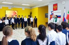 Сегодня в нашей школе прошла торжественная церемония поднятия флагов России и Татарстана. На церемонии присутствовали 2 и 8 классы.