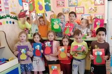 Дети подготовительной группы тоже решили поздравить дедушку с днем рождения. Воспитатели показали ребятам тематические иллюстрации, повторили вместе с ними пословицы и поговорки, вспомнили увлекательные зимние забавы и сделали портрет Деда Мороза в новой шубке.