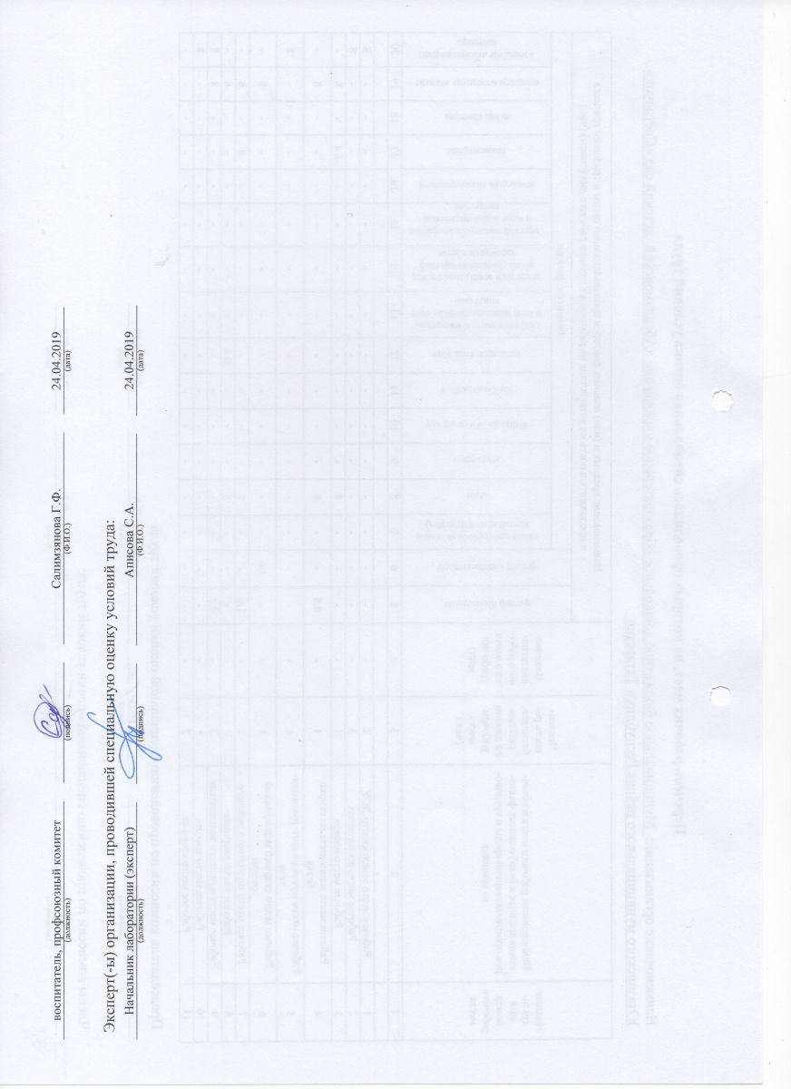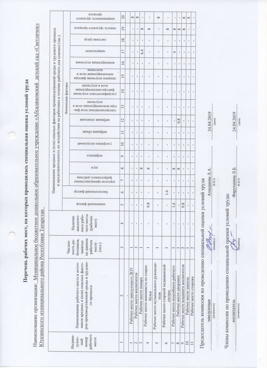 Перечень рабочих мест, на которых проводилась специальная оценка условий труда
