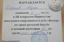 III Первенство школьного спортивного клуба "Батыр"по греко-римской борьбе 07.05.2018