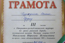 В Открытом республиканском турнире по греко-римской борьбе, посвященном памяти Мастера спорта СССР Мингалиева Ибрагима Исмаиловича на призы главы администрации г. Азнакаево, и прошедшем 29 апреля 2018 г. обучающийся 9 класса МБОУ «Абсалямовская ООШ», активист детского движения - Гиззатуллин Ислам, в весовой категории 63 кг среди юношей 2001-2002 г.р. занял 3 место. Поздравляем!