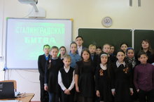 В рамках празднования годовщины победы в сталинградской битве, сегодня, 2 февраля 2018 г., в 5,7 классах МБОУ «Абсалямовская ООШ» (охват – 23 обучающихся) прошло мероприятие: «2 февраля – день воинской славы в России». На нём библиотекарь СДК с. Абсалямово Кубашева Г.В. вместе с ученицами 5 класса рассказала присутствующим о важнейших фактах из битвы, потерях. Далее учащиеся посмотрели презентацию, посмотрели фильмы о сталинградской битве, изучили события, человеческие жертвы.