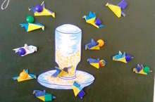 Первоклассники на уроке технологии учились изготавливать синичек.